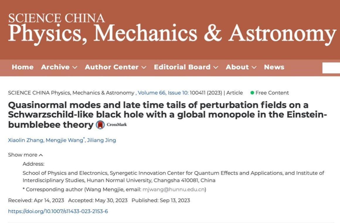 王梦杰副教授与荆继良教授课题组在《SCIENCE CHINA Physics, Mechanics & Astronomy》上发表最新研究成果 |