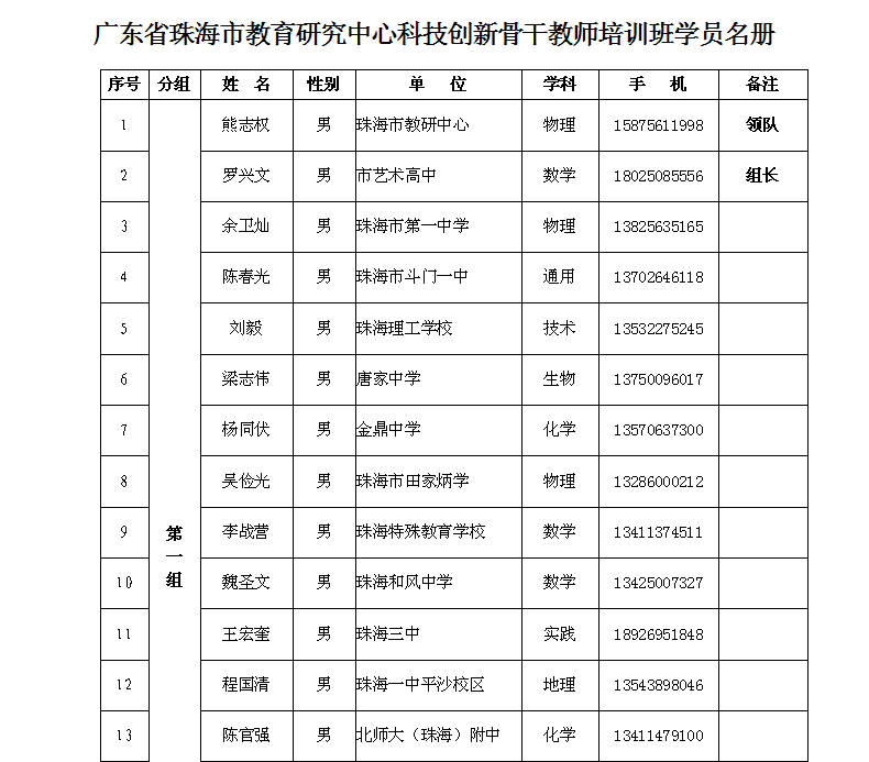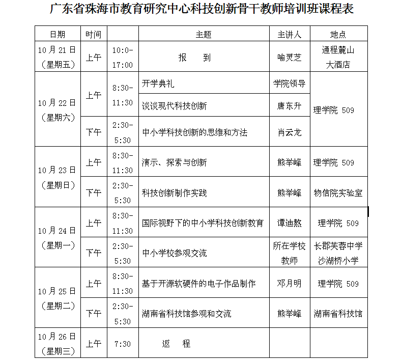 广东省珠海市教育研究中心科技创新骨干教师培训班