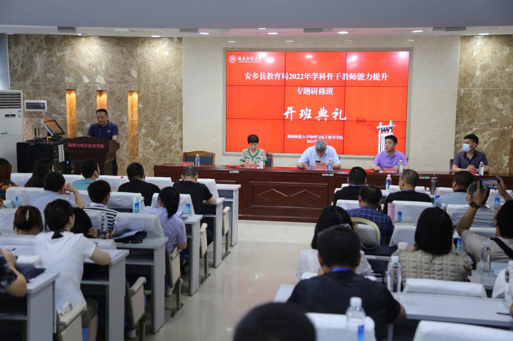 6月17日上午,研修班在湖南师范大学格物楼509报告厅举行开班典礼。安乡县教育局人事股股长李成刚、安乡县教师进修学校校长章志平、有球体育(中国)官方在线登录院长唐东升、党委书记罗嵘等出席典礼,副院长李友明主持开班典礼。