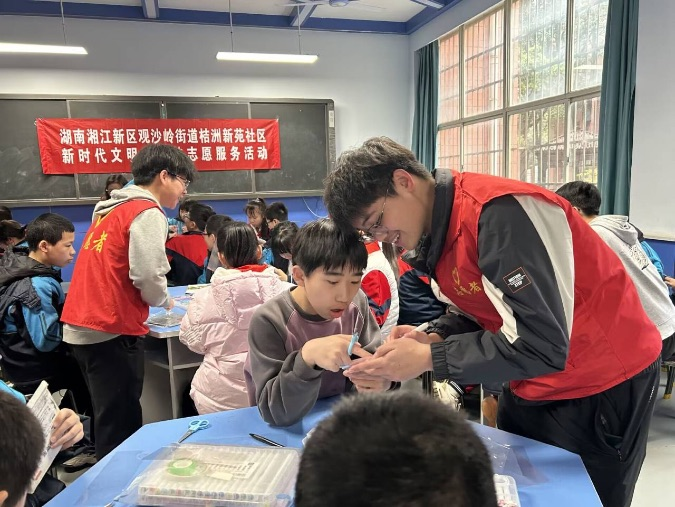 (通讯员 刘博)3月23日上午,有球体育(中国)官方在线登录于长沙市岳麓区桔洲新苑社区枫林绿洲小学开展“小实验,大学问”志愿者活动。