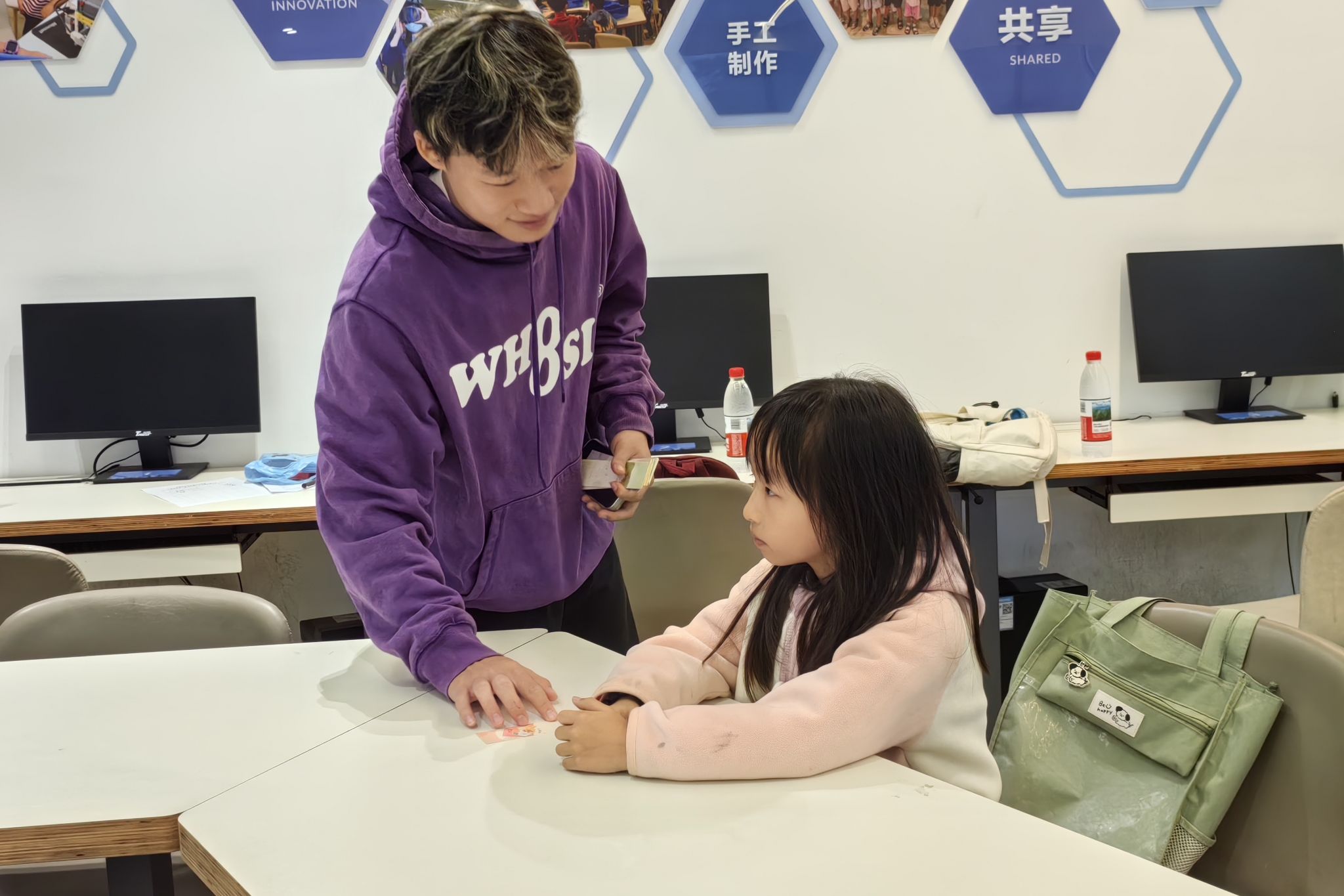 活动期间,主讲人以愚公移山的故事背景与精神内涵为话题,引导小朋友理解坚持不懈的意义。在互动环节,志愿者们主动走近小朋友,鼓励他们分享“自己曾遇到的“大山”。对积极回答问题的小朋友,志愿者及时送上小奖品以鼓励;对有绘画表达需求的小朋友,志愿者先后分发绘画材料。小朋友们绘画完毕后,上台展示自己的绘画思路。在志愿者们的陪伴和引导下,每个小朋友都积极参与其中,勇敢表达,认真创作,现场充满了童真与活力,活动也在温馨的氛围中圆满结束。