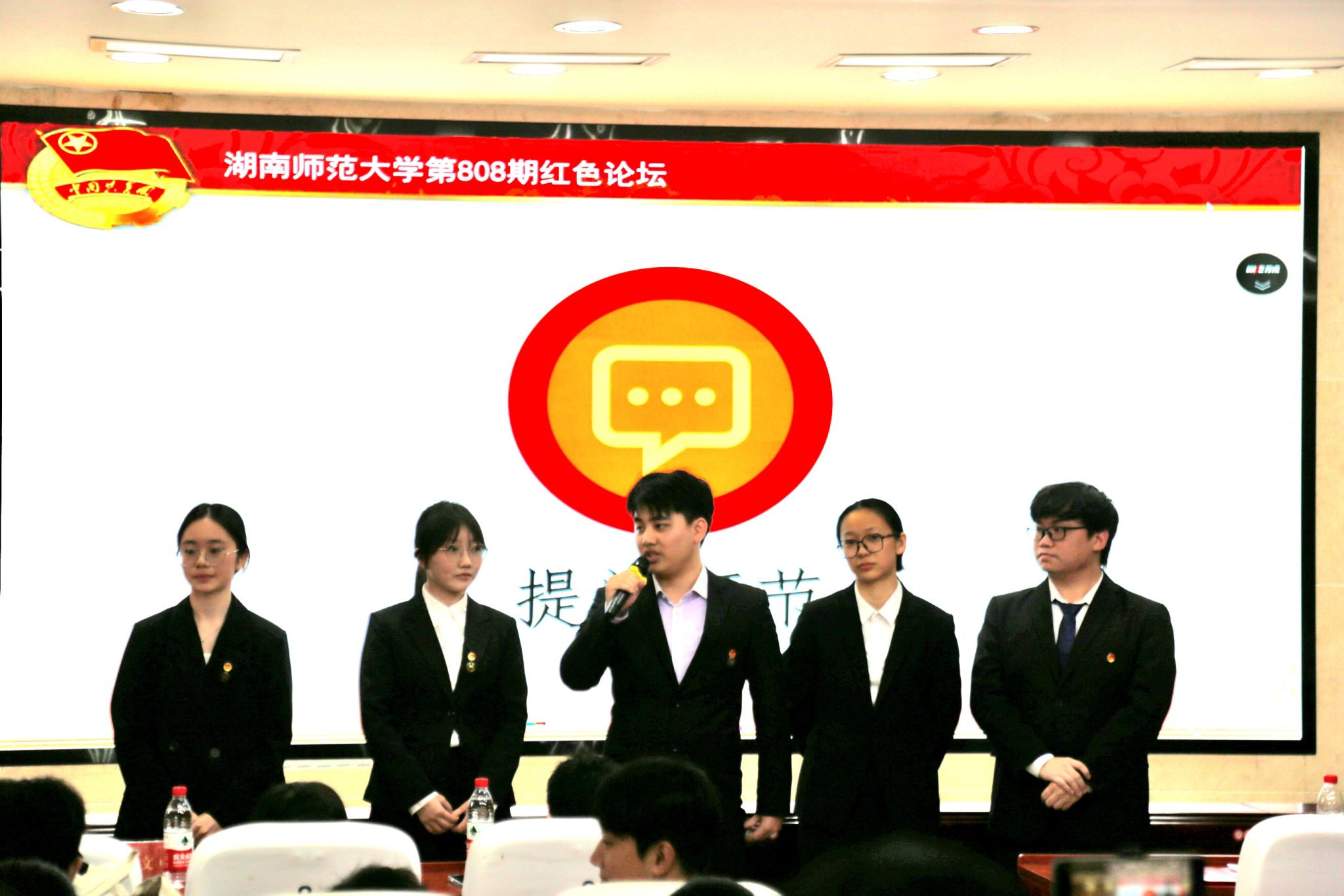 (通讯员陈雨婕许玲)10月28日中午,有球体育(中国)官方在线登录团委于格物楼509报告厅组织开展第808期红色论坛。物电院团委负责人蒋文卓老师,湖南师范大学哲学系暨道德文化研究院胡景谱老师作为特邀嘉宾出席此次活动。2023级李志柔,沈蓉,李长春,殷梓萱,2024级邓湘源五位同学担任此次论坛主讲人。