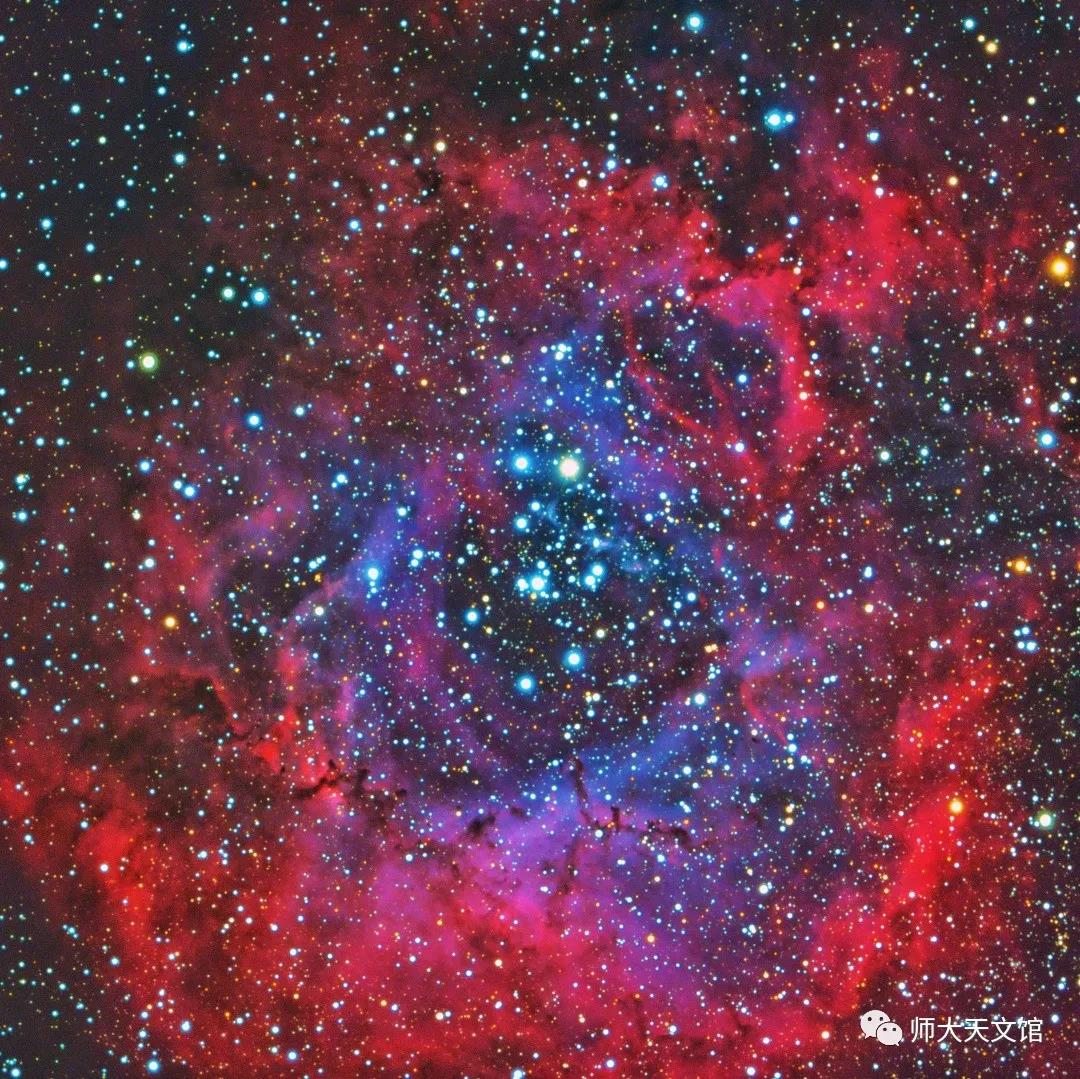 “它是宇宙中永不凋谢的玫瑰,星辰为泥,银河滋养,永远盛放。”初读这句话,便了解到句中的“它”指的是麒麟座的玫瑰星云——宇宙级别的永恒浪漫。之后,我也去查阅了相关资料,具体地了解了玫瑰星云。科学家根据玫瑰星云的光谱得知,它是个发射星云。一些年轻的新生星球被包围在中间,它们吹出的恒星风将附近残余的云气吹散,不仅形成了中央的空隙,也因此造就了无比美丽的玫瑰星云。浩瀚无穷的宇宙,孕育出这美丽壮观的景象,这也是天文学的魅力吧!