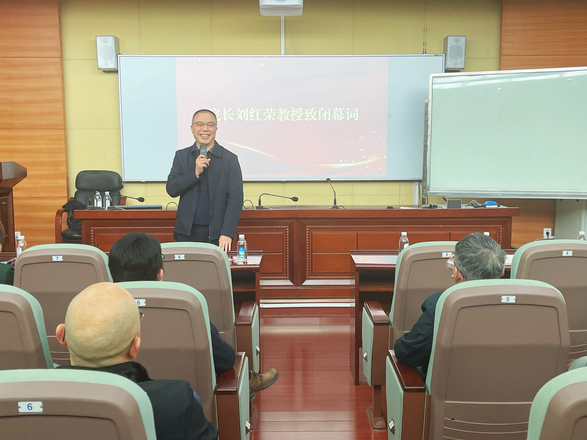 院长刘红荣致闭幕词,他传达了刘仲华校长来院调研座谈的讲话精神,对于当前发展的新阶段新任务,他提出了三点希望:一要始终锚定冲击一流学科发展目标。坚决落实学校党委行政的决策部署,在高位上实现学院新的跨越式发展。二要提振奋发作为的精神,贯彻落实好刘校长调研讲话精神。三要营造凝心聚力的氛围,全院要精诚团结,心往一处想,劲往一处使,,以优异的成绩迎接新中国成立75周年。