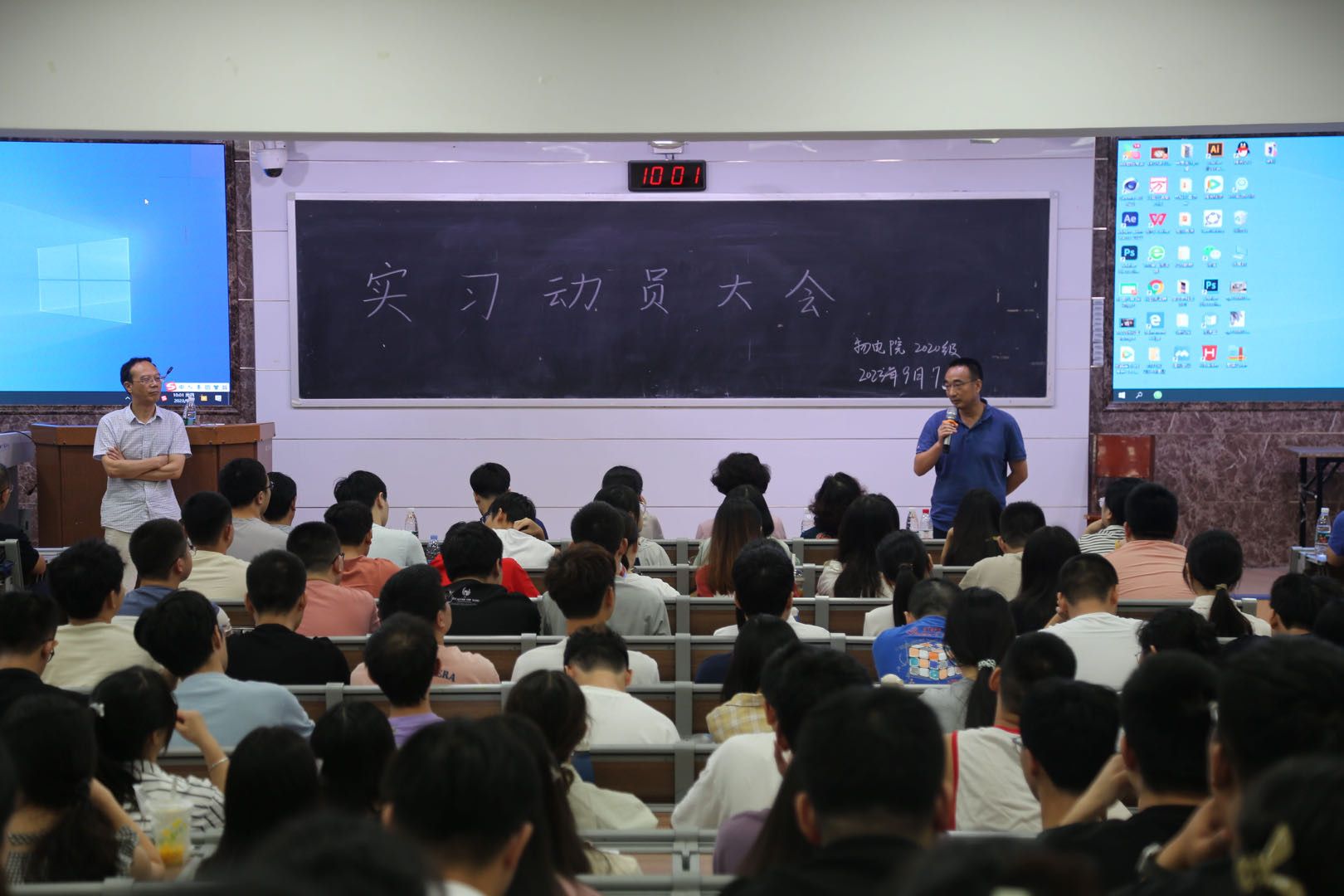 (罗瑞霞 王贻菲)为进一步提高师范生的专业教学能力,提升师范毕业生实习成效和就业竞争力,9月7日,物电院于理学院109报告厅召开2020级物理学专业教育实习动员大会,学院分管教学副院长钱盛友,党委副书记郭铭伟,物理系系主任钟显辉、副系主任潘启沅出席会议。会议由学院师范技能实训中心主任刘健智教授主持。