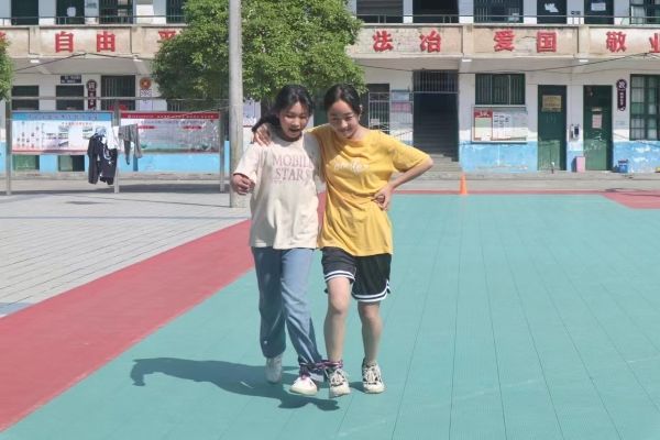 趣味运动会主要分为拔河、乒乓球运球接力赛、袋鼠跳、男女限时篮球投篮赛、4×50米接力赛、两人三足、抱球接力以及无敌风火轮八个项目。同学们若想取胜设立的运动会各项目,不仅是简单地追求速度,更需思考应如何配合取胜,权衡利弊,做出最佳方案。比赛项目结束后,支教队应同学们要求增设了学生与支教队队员的篮球友谊赛,友谊赛过程中,师生共同协作,迎“篮”而上,塑造了同学们的集体荣誉感,增强了班级的凝聚力与向心力,共筑师生情谊,打造向真、向善、向上的班集体。