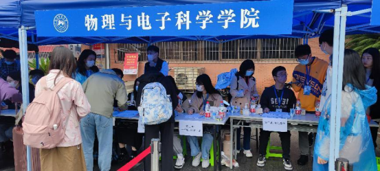 10月09日,湖南师范大学物电院迎来了2022级研究生新生。迎新点设立在湖南师范大学五舍广场,新生报到工作由学院科研办组织,院研究生会以及志愿者执行。志愿者们充分发挥不怕苦不怕累的精神,迎着寒风,冒着小雨,维持报到现场的秩序,严查新生的健康码、返校二维码、外省返校新生的48小时内核酸检测结果和核对新生信息准确性,耐心热情的为新生答疑解惑、搬运行李、指引大家进入寝室,报到过程高效流畅。期间,罗嵘书记、唐东升院长、欧阳钢副院长、科研办主任唐湘云老师和科研办姚顺老师来到迎新现场指导工作,慰问参与迎新的工作人员和志愿者,并向前来报到的新生表示欢迎和问候。