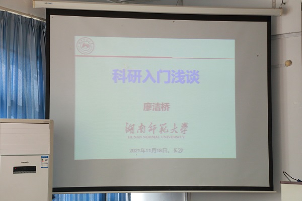 廖洁桥向同学们展示了物电院院系的发展历程和学科设置,并介绍了物电院的师资队伍情况和科学研究方向。他指出,科研是创造性的工作,是对未知的探索和认识的过程,根据研究的目的、任务和方法的不同而划分出不同的类型。做好科研工作,需要选取合适的方向,充分利用现代工具,广泛获取学术资源,培养自己的风格与特色。他建议同学们在学好基础课程之上,拓宽科学视野,在阅读文献中增强提问与思考能力,积极、礼貌地与老师和组员沟通,讲究学术规范。