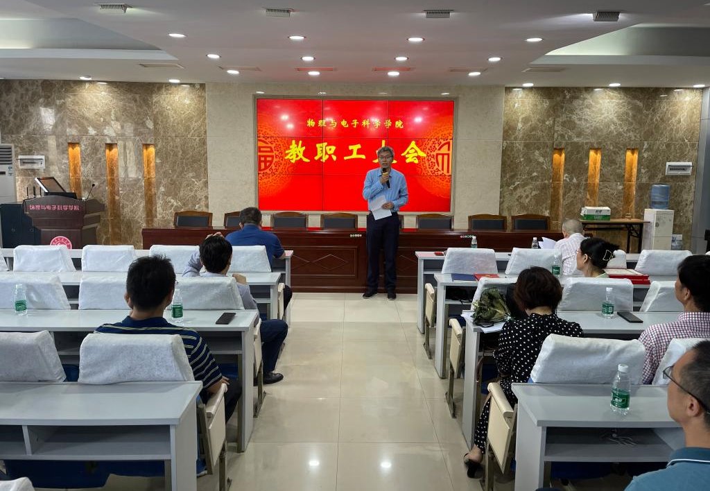 7月9日上午,学院在509报告厅召开全院教职工大会。全体院领导、各系(中心)、各办公室共100余名教职工参加了会议,会议由院长唐东升主持。唐东升院长首先做学期工作总结,他着重强调了下一阶段有球体育(中国)官方在线登录需要着力做好的几项工作及发展任务,并有针对性的提出了发展思路和对策。接下来康洪书记宣读了2020年度考核优秀获嘉奖名单,并与唐东升院长一同为获嘉奖的教职工颁发荣誉证书。