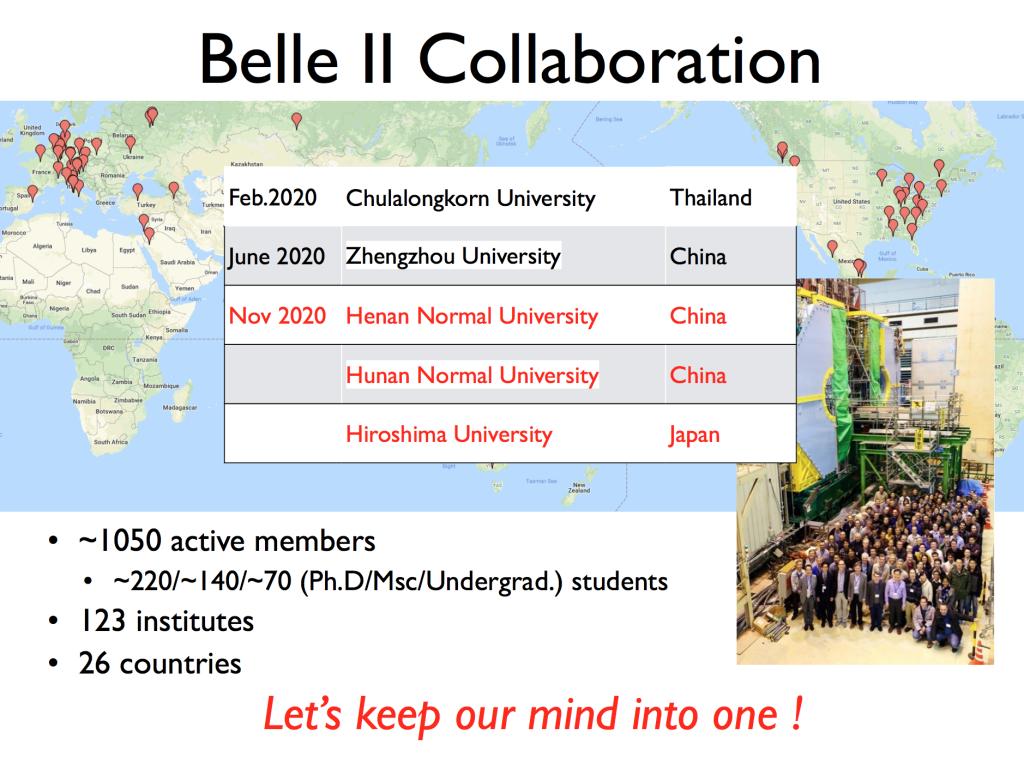 我校有球体育(中国)官方在线登录单葳老师团队在2020年11月9日至11月13日刚刚举办的第37届Belle II国际实验合作组会议上,代表湖南师范大学申请加入Belle II 国际合作组。经过长达2个月的申请材料准备,与合作组管理层邮件沟通交流及远程会议做申请报告、答辩陈述等环节,最终经120个国际成员单位投票,湖南师范大学获得全票通过,正式成为Belle II国际合作组的正式成员单位。湖南师范大学成为继中科院高能物理研究所,复旦大学,北京大学,中国科技大学,北京航空航天大学,辽宁师范大学,苏州大学,山东大学,南京师范大学、郑州大学之后第11个加入Belle II国际合作组的中国大陆成员单位。