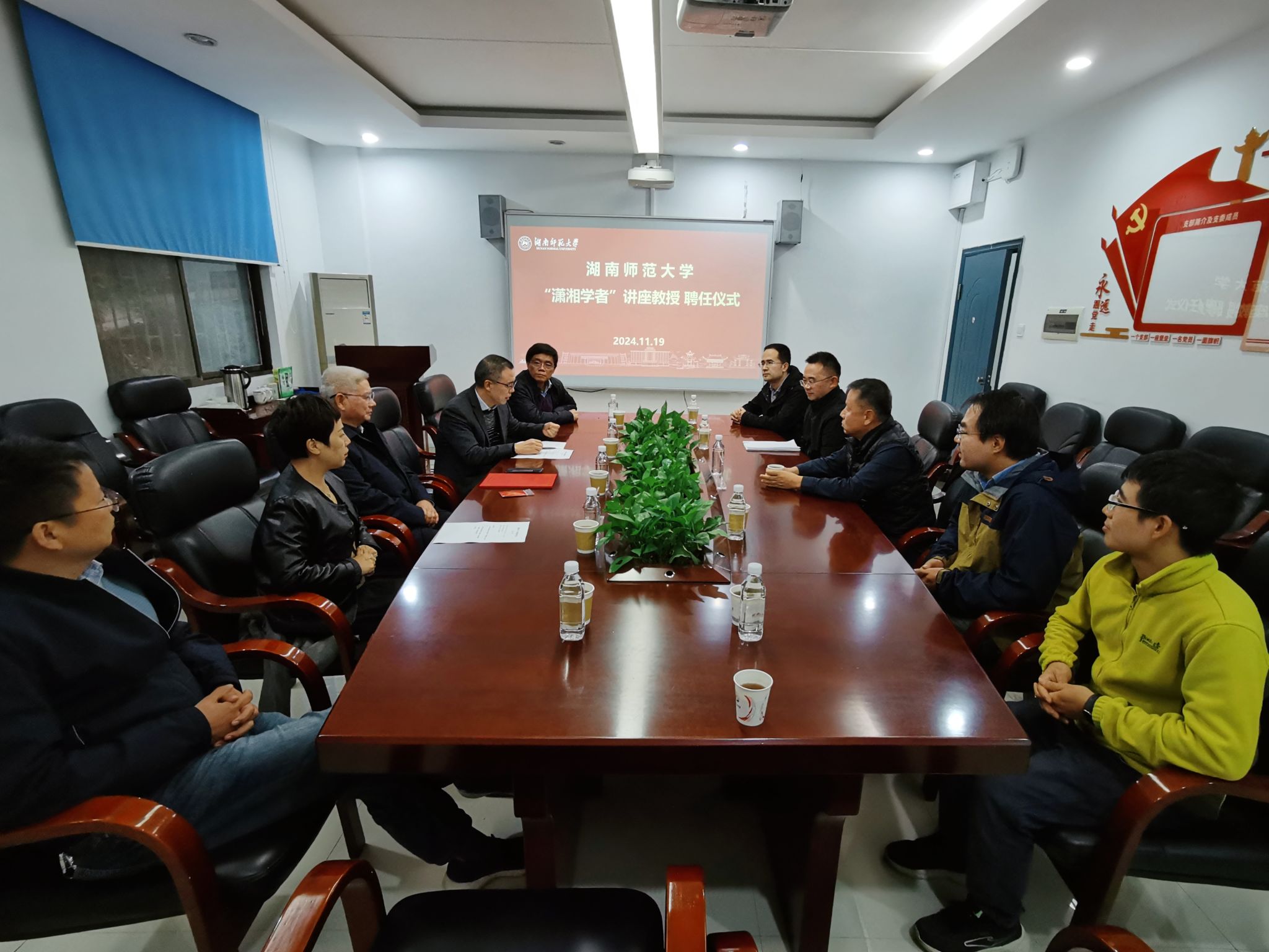 11月19日下午,有球体育(中国)官方在线登录在量子楼309会议室举行“潇湘学者”讲座教授聘任仪式,聘任彭勃为“潇湘学者”讲座教授。副校长唐贤清出席仪式。仪式由有球体育(中国)官方在线登录党委书记罗嵘主持。