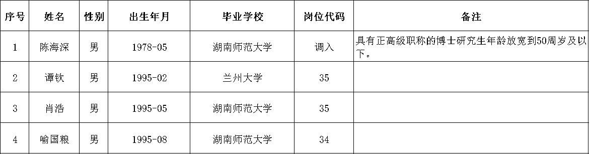 根据《湖南师范大学2025年第一批专任教师公开招聘公告》,经学院人才引进招聘小组审核,以下4人资格初审通过,特此公示: